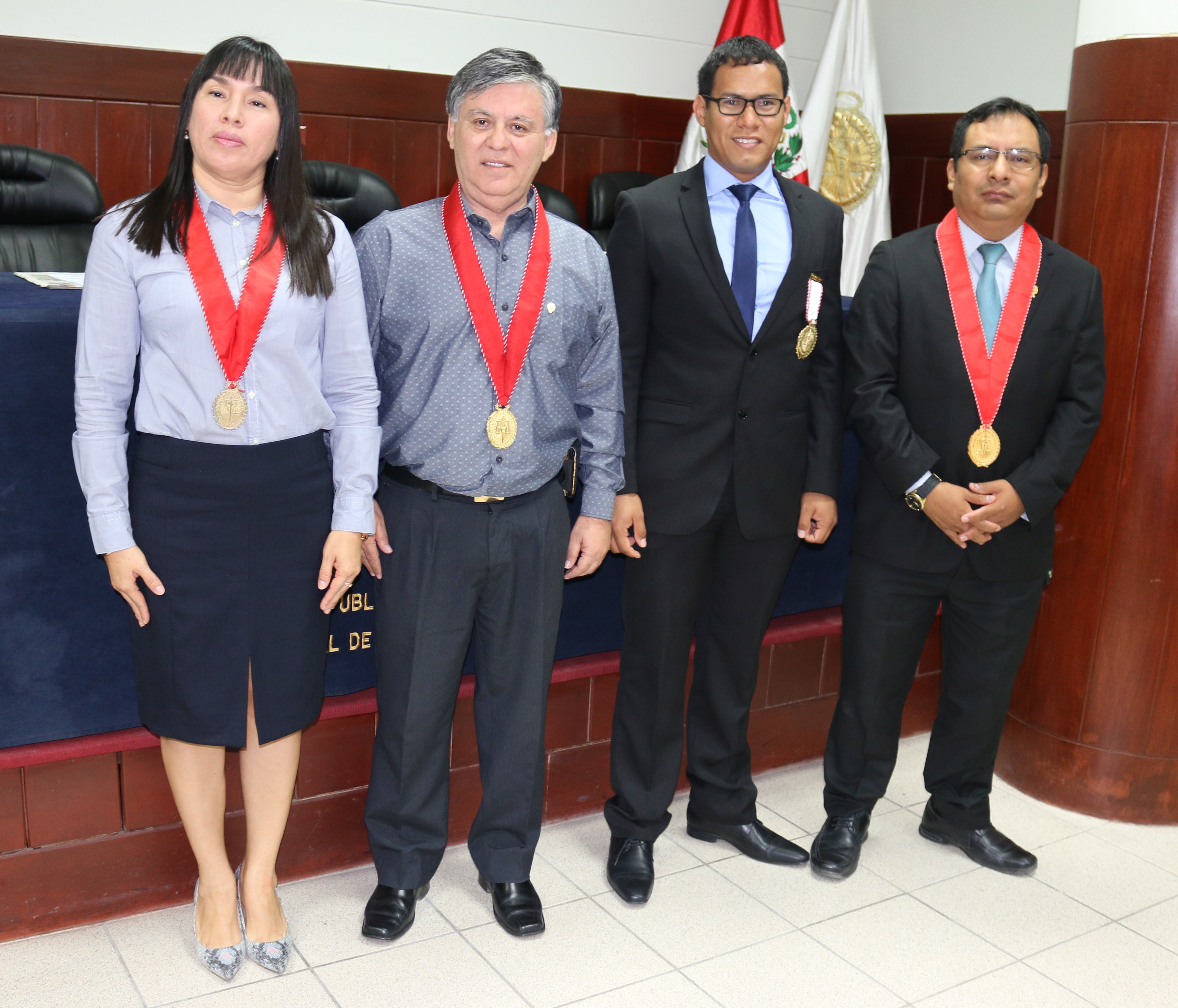 La breve ceremonia realizada en el auditorio «Dr. Walter Guerrero Guerrero» de la sede central, contó también con la presencia de los fiscales superiores Faviola Campos Hidalgo y José Luis Nizama Rugel, y sus compañeros de trabajo.