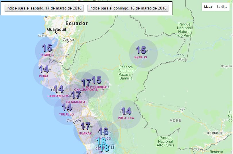 Este nivel máximo de radiación se presenta entre las 12:30 del mediodía y las 3:00 de esta tarde. Sin embargo, otros días la radiación en la ciudad ha alcanzado niveles entre los 15 y los 17 grados.