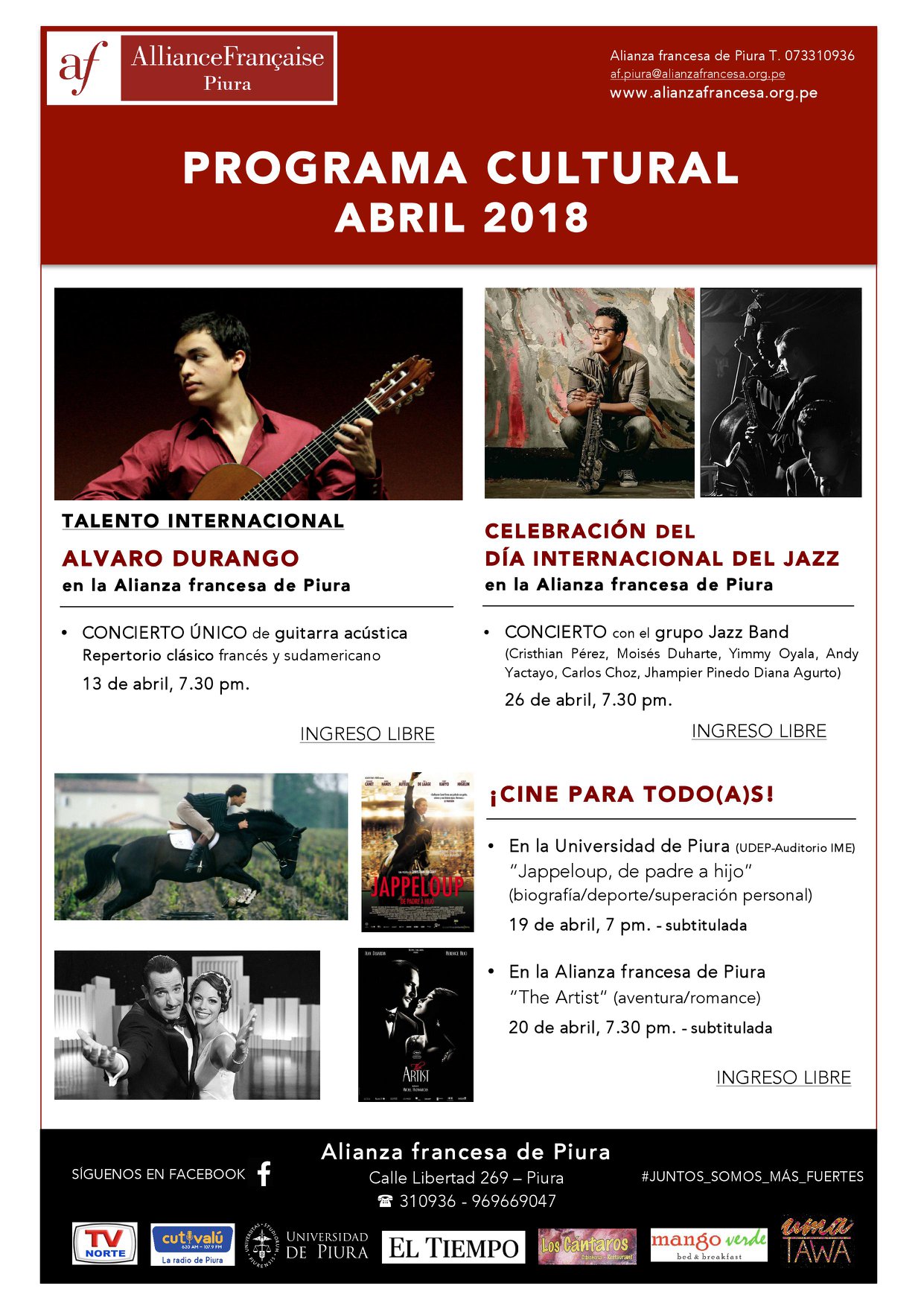 En abril, la Alianza Francesa nos invita a participar de sus actividades culturales de música y cine, dos medios a través de los cuales podemos viajar y conocer culturas.
