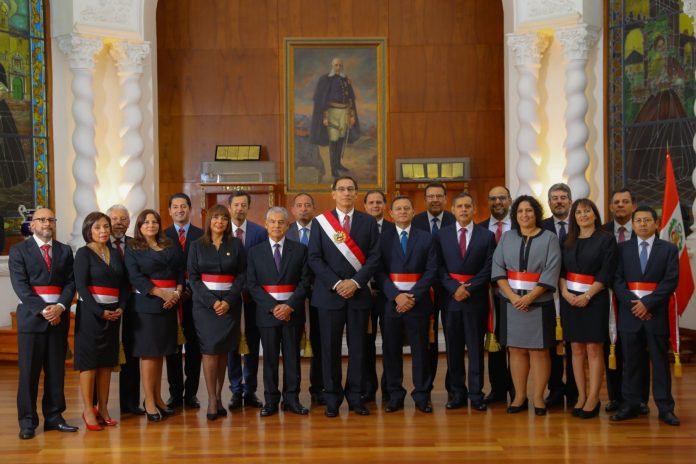 “Este es el equipo que me acompañará en la tarea de llevar desarrollo y bienestar a los peruanos de todas las regiones del país. Equipo Perú. El Perú primero”, precisó Vizcarra.