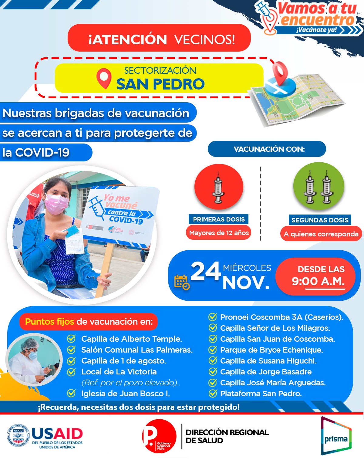En la región Piura hay más de medio millón de personas que no han recibido la primera dosis de la vacuna contra la covid. Así lo advierten las autoridades de Salud, quienes iniciaron el miércoles 17 de noviembre la vacunación casa por casa para inmunizar a 185 mil piuranos en la región hasta finales de noviembre.