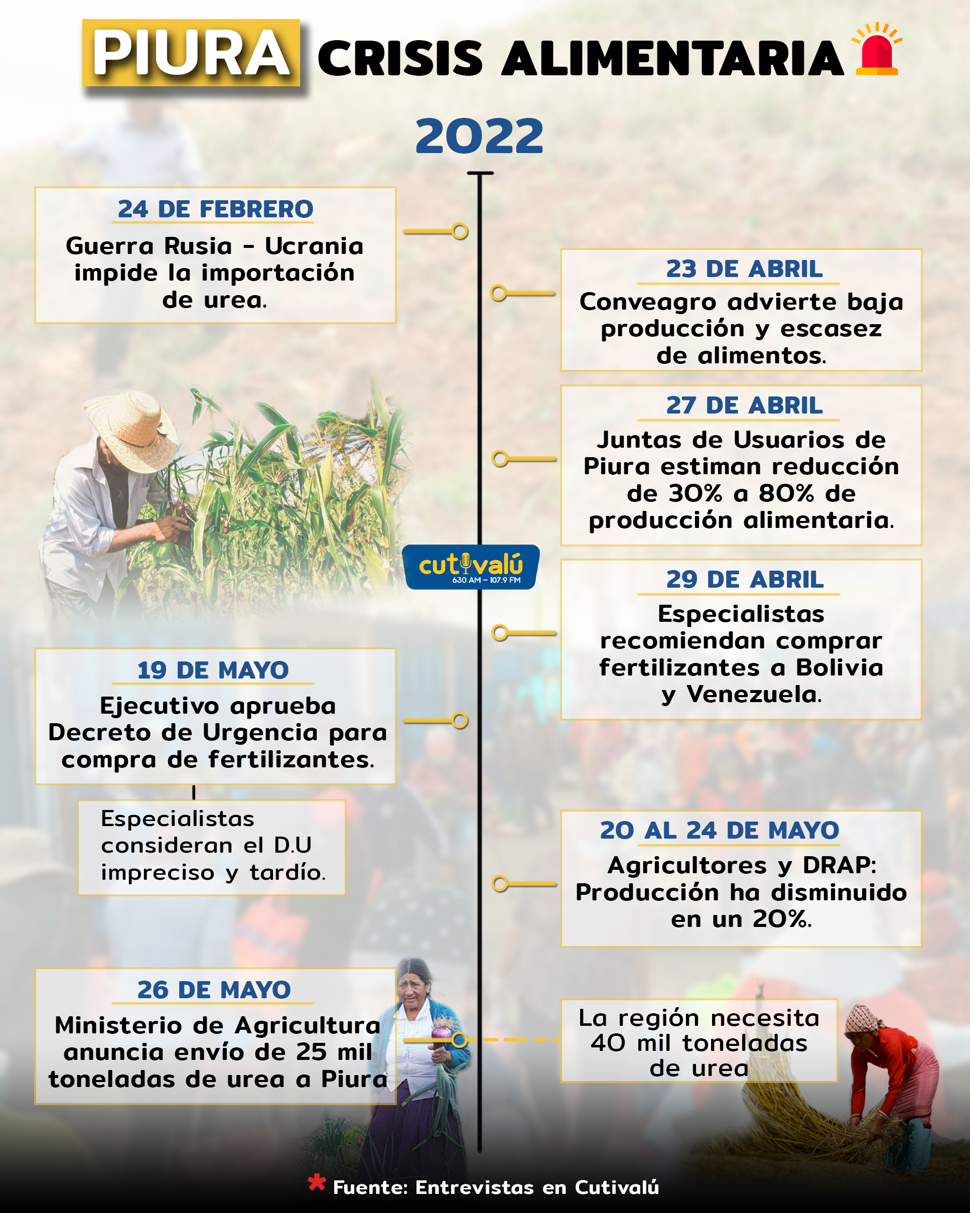 En cuanto a la distribución de la urea para los agricultores, Gonzalo Cruz dijo que aún se está a la espera de las órdenes de la unidad central de Agrorural y del Ministerio de Desarrollo Agrario y Riego (Midagri) para tomar acciones, pero que ya se está coordinado el empadronamiento de beneficiarios junto a la Dirección Regional de Agricultura de Piura.