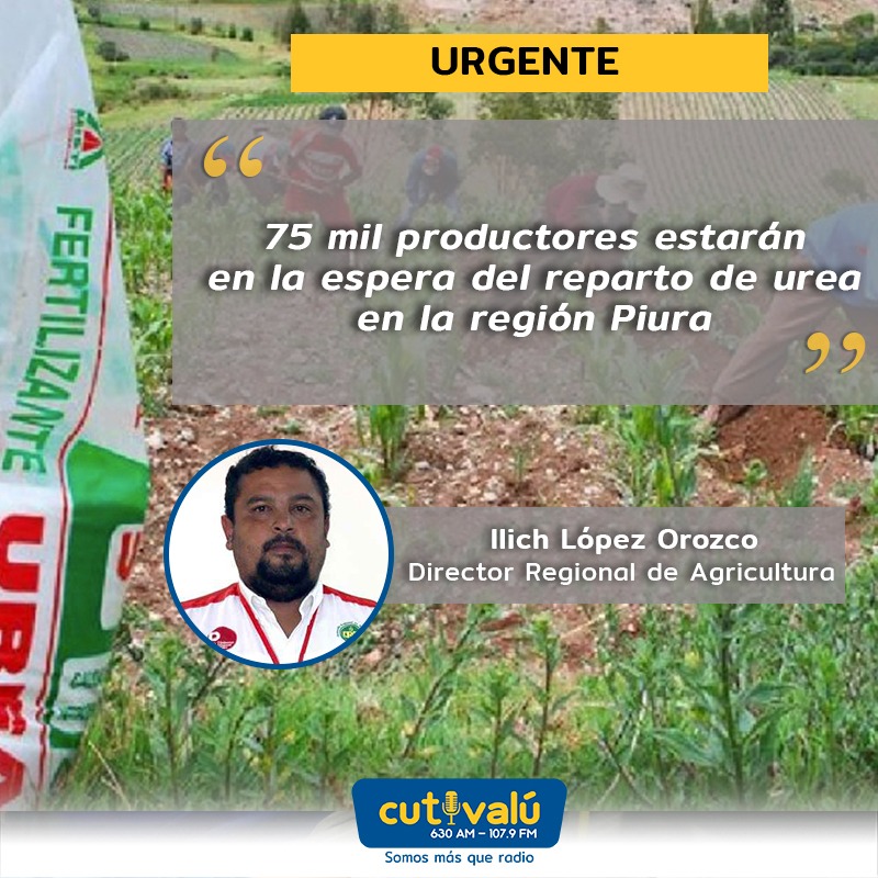 El director regional de Agricultura, Ilich López Orozco, informó que en Piura existen más de 75 mil agricultores quienes se encuentran a la espera de la urea prometida por el Ejecutivo para solventar su demanda de este importante fertilizante usado, en su mayoría, en cultivos temporales como el arroz y el maíz, productos que según las diferentes Juntas de Usuarios y agricultores independientes, podrían escasear en los próximos dos meses debido al uso de pocas hectáreas de tierra utilizadas para cultivar estos productos.