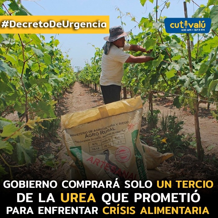 El funcionario señaló a Cutivalú que la causa de la cantidad deficiente de urea que será destinada para Piura en el marco de la crisis agrícola, se debe al poco presupuesto asignado por el Ejecutivo para realizar la importación de este fertilizante desde el extranjero.