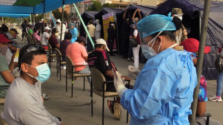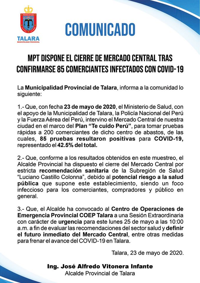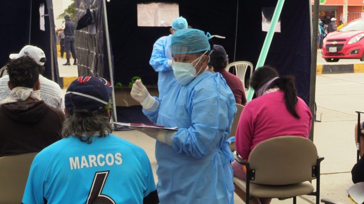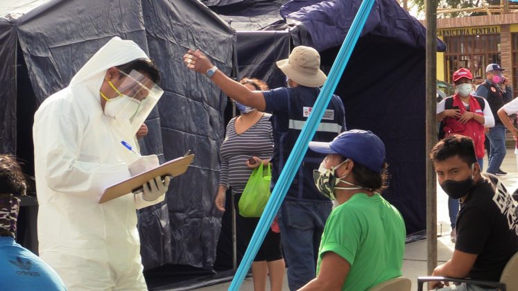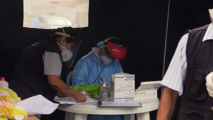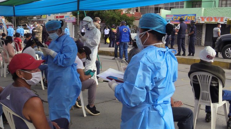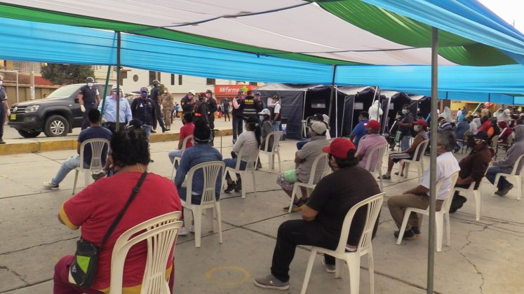 En el marco del plan “Te Cuido Perú”, ayer por la mañana se aplicaron 200 pruebas rápidas de COVID-19 a los comerciantes del mercado central de Talara, resultando más del 40% de comerciantes positivos a las muestras.