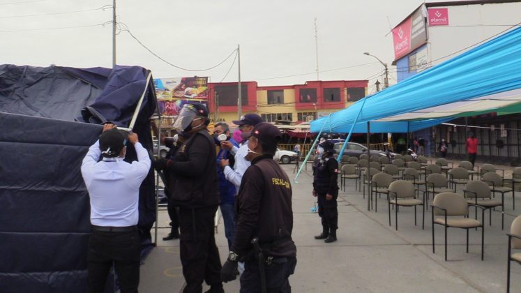 La jornada se realizó en el mercado central al promediar las 8 de la mañana, donde el personal del Minsa, en coordinación con los miembros de las Fuerzas Armadas, Policía Nacional del Perú, integrantes de serenazgo, personal de servicios públicos y fiscalización, iniciaron las labores de toma de muestras.