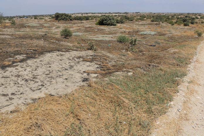 El terreno de casi 20 hectáreas se ubica en el distrito Veintiséis de Octubre, a unos metros del asentamiento Ollanta Humala. Allí se tenía prevista la construcción de 600 viviendas definitivas para las familias que lo perdieron todo tras el desborde del río Piura.