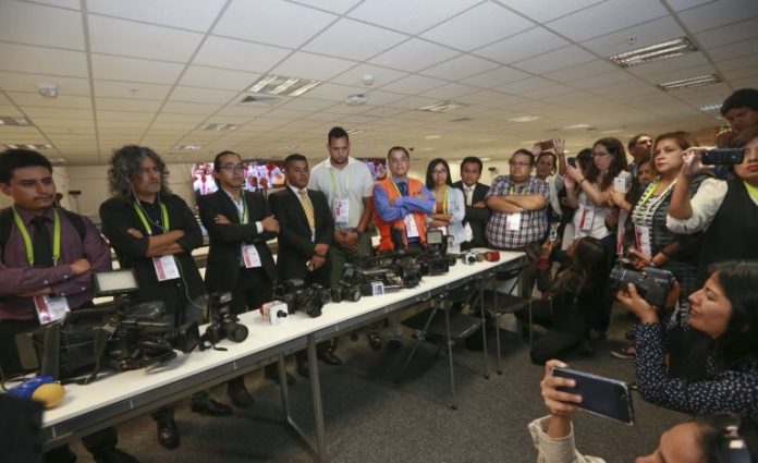 Periodistas encargados de cubrir la VIII Cumbre de las Américas guardaron este viernes un minuto de silencio por el asesinato de sus colegas ecuatorianos en manos de disidentes de las FARC.