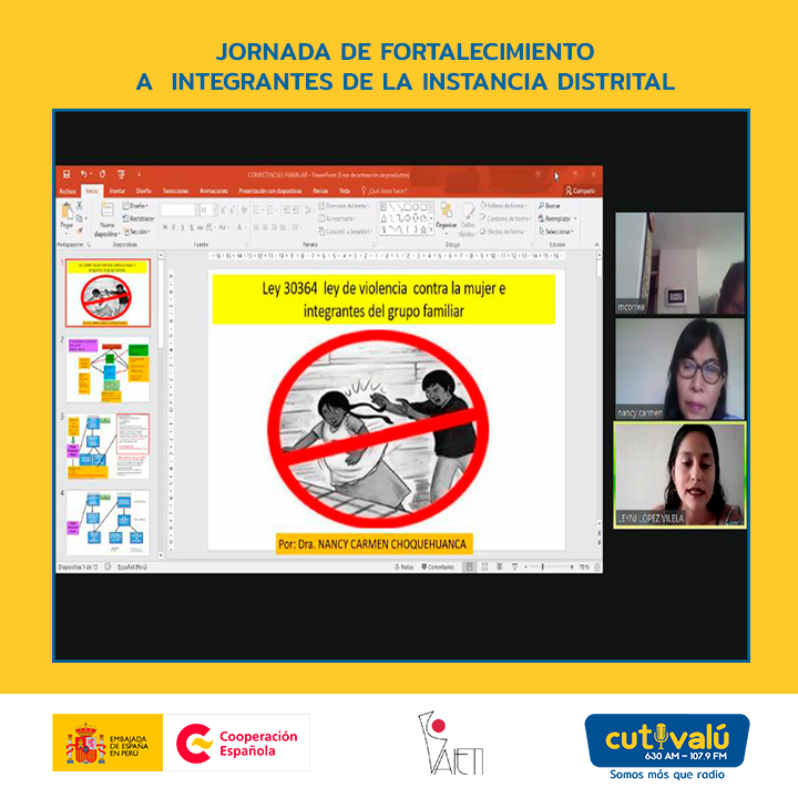 En abril, integrantes de la Instancia Distrital de Concertación para la Prevención Sanción y Erradicación de la Violencia de Género de Veintiséis de Octubre participaron de una jornada de fortalecimiento en relación a la atención adecuada a mujeres víctimas de violencia y actualización de la Ley 30364.