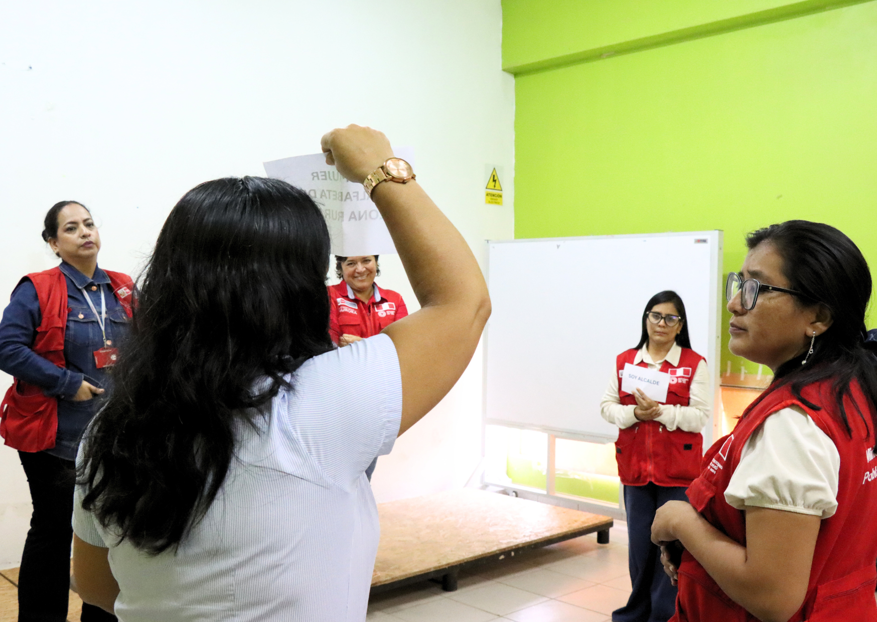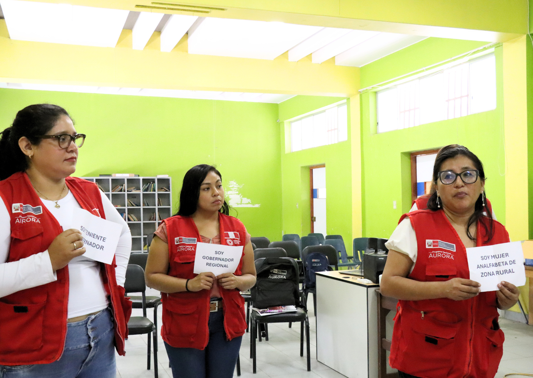 Durante la jornada, las participantes vivieron experiencias reflexivas a través de diversas dinámicas participativas. Una de las más impactantes fue la dinámica de “La caminata del poder”, en la que las promotoras asumieron distintos roles sociales como alcalde, regidora, teniente gobernador, mujer analfabeta de zona rural, adolescente embarazada y consejera regional, para visualizar de manera práctica las desigualdades y desventajas que afrontan los diferentes grupos en nuestra sociedad.