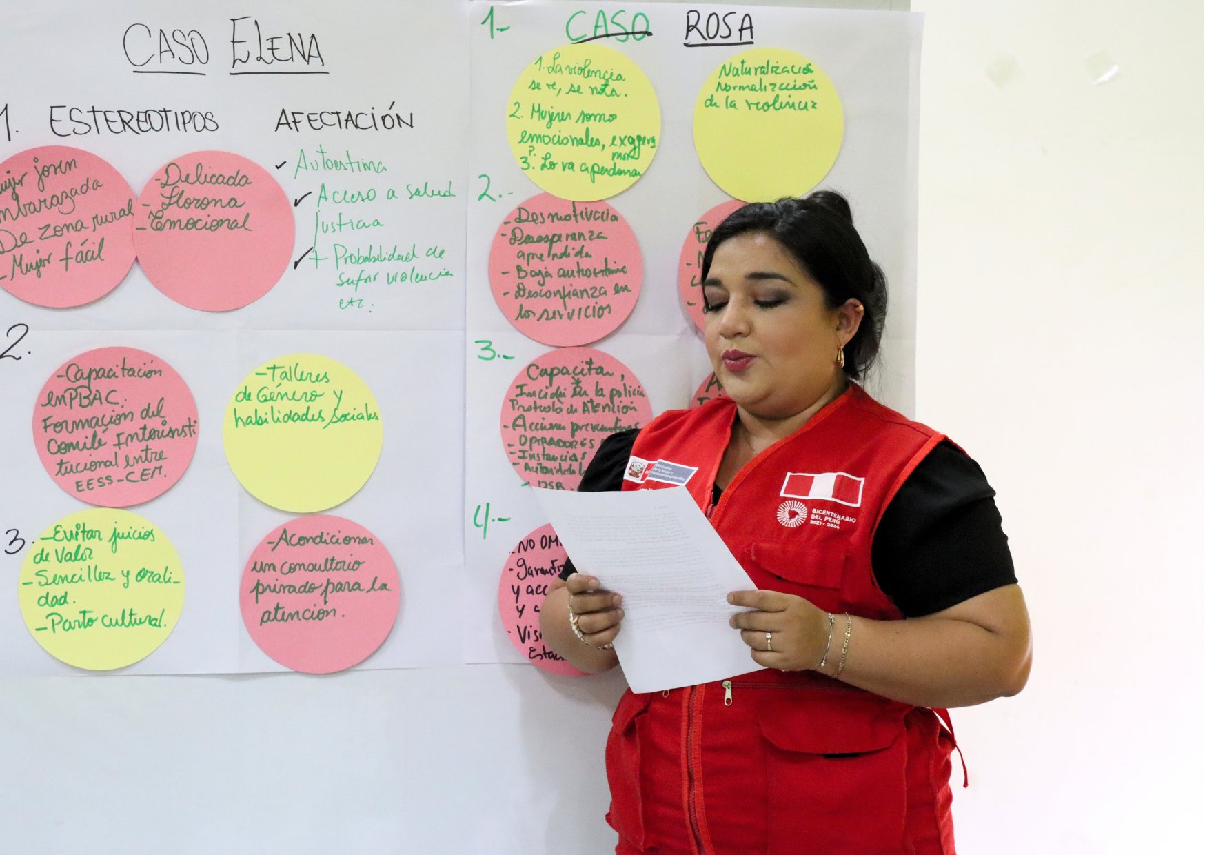 Posteriormente, se llevó a cabo un análisis de casos en grupos, que fomentó el debate en torno a preguntas como: ¿tienen los servicios públicos un enfoque de género? y ¿cómo deberían mejorar para garantizar una atención equitativa y respetuosa?