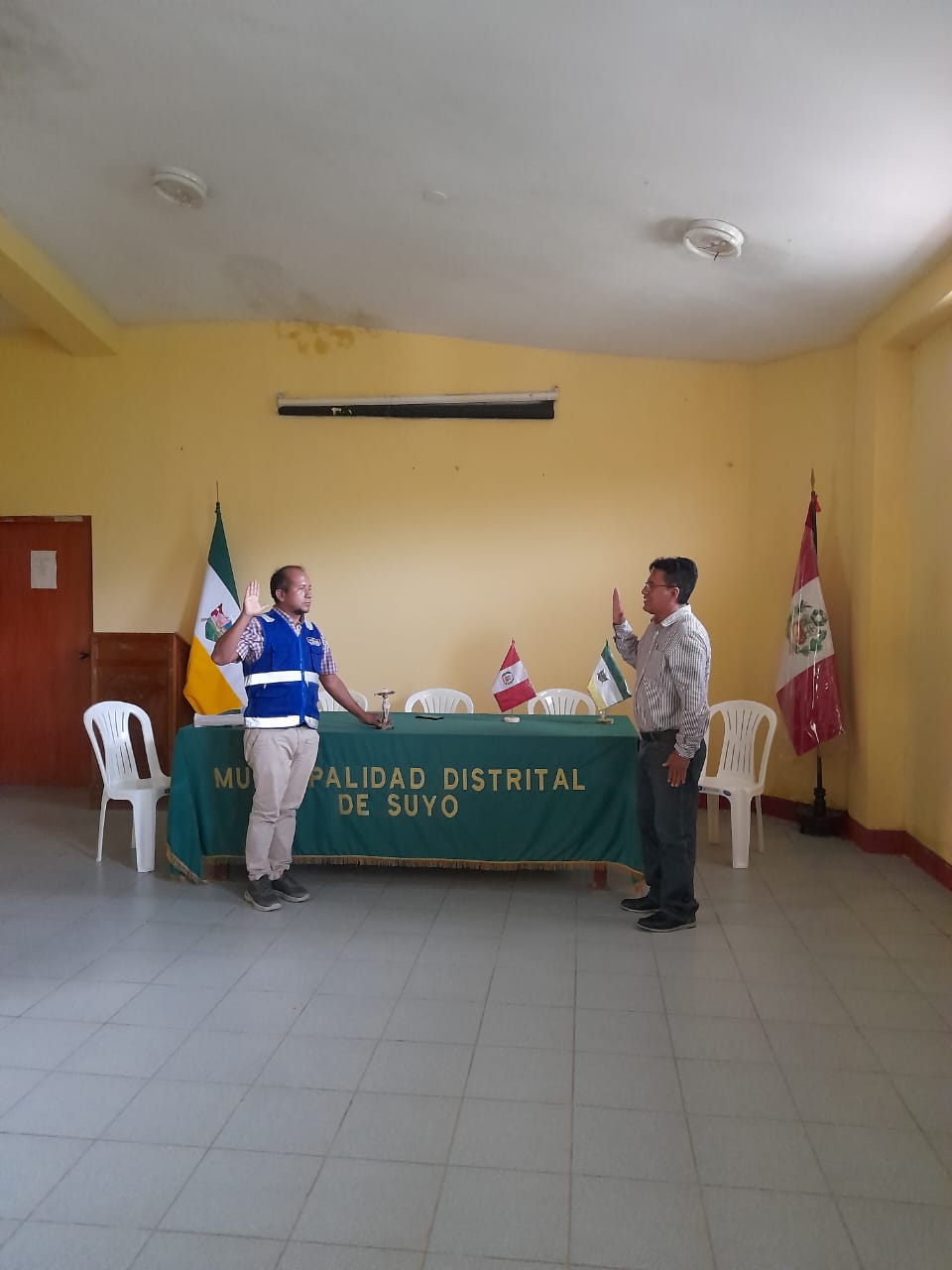 El alcalde distrital de Suyo, Jorge Huanca Merino, como presidente de esta instancia, tomó el juramento al Lic. Pedro Hinostroza Alvarado, promotor en el distrito del proyecto “Tu vida no tiene precio, denuncia la trata”, que ejecuta Cutivalú en las regiones de Piura y Amazonas.