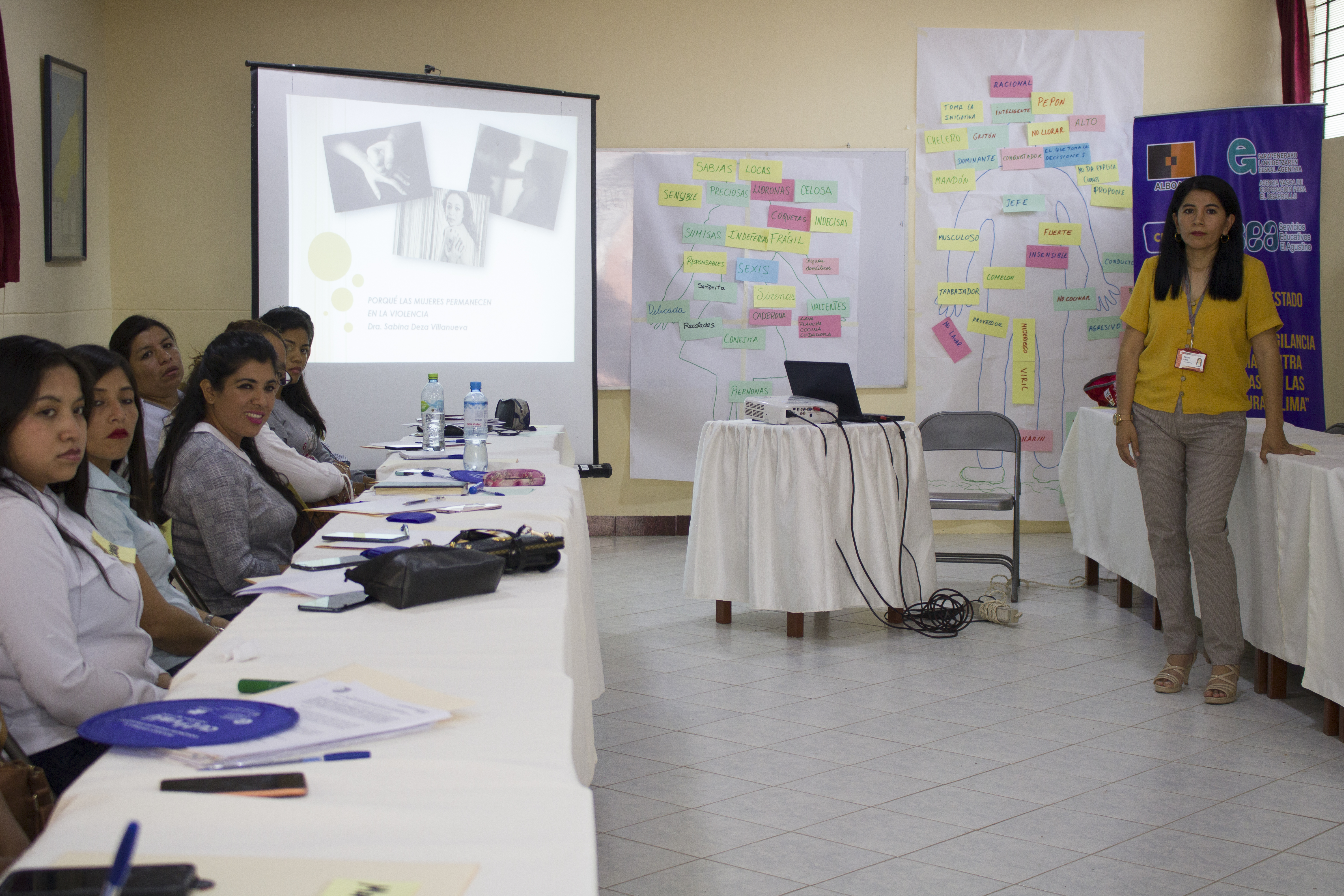 Carmen Ramos León, psicóloga del Centro de Emergencia Mujer (Piura) dio a conocer el tema de la indefensión aprendida (como una mujer permanece en un círculo de violencia).
