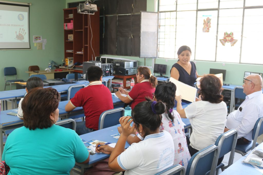 Con la intención de que incluyan dentro de sus planes de tutoría temas referentes a los diferentes tipos de violencia, este martes 16 de julio, se llevó a cabo en la institución educativa José Olaya Balandra del distrito de Veintiséis de Octubre una asistencia técnica a docentes en la que también participaron los y las maestras de la institución educativa Nuestra Señora del Pilar.