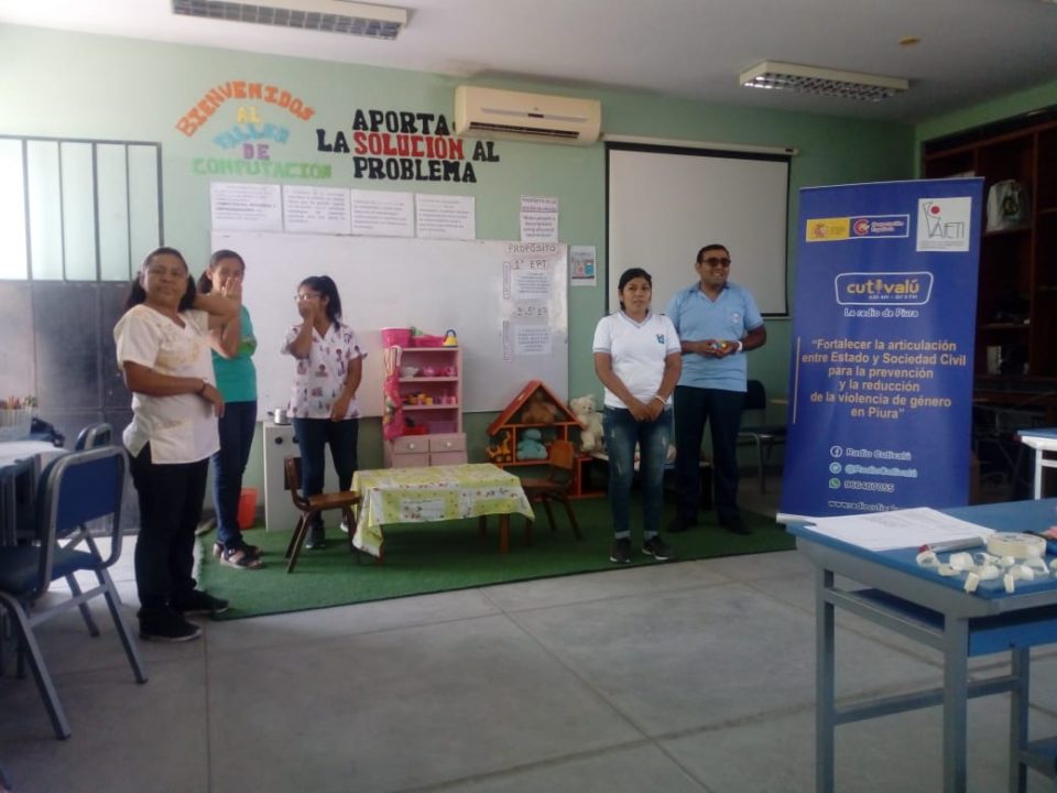 En el marco del proyecto para fortalecer la articulación entre estado y sociedad civil para la prevención y la reducción de la violencia de género en Piura, Cutivalú gracias al respaldo de la Agencia Española de Cooperación Internacional Para el Desarrollo, realizó este martes 28 de mayo, una sesión de aprendizaje con docentes de los niveles inicial, primaria y secundaria de las instituciones educativas José Olaya Balandra y Nuestra Señora Del Pilar, ambas ubicadas en el distrito de Veintiséis de Octubre.