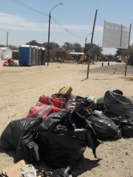 El poblador Jesús Yovera Palomino denunció a través de Cutivalú, que desde hace dos semanas, los sacos de basura se han acumulado en distintos puntos del campamento, debido a que los carros municipales no llegan a la zona.