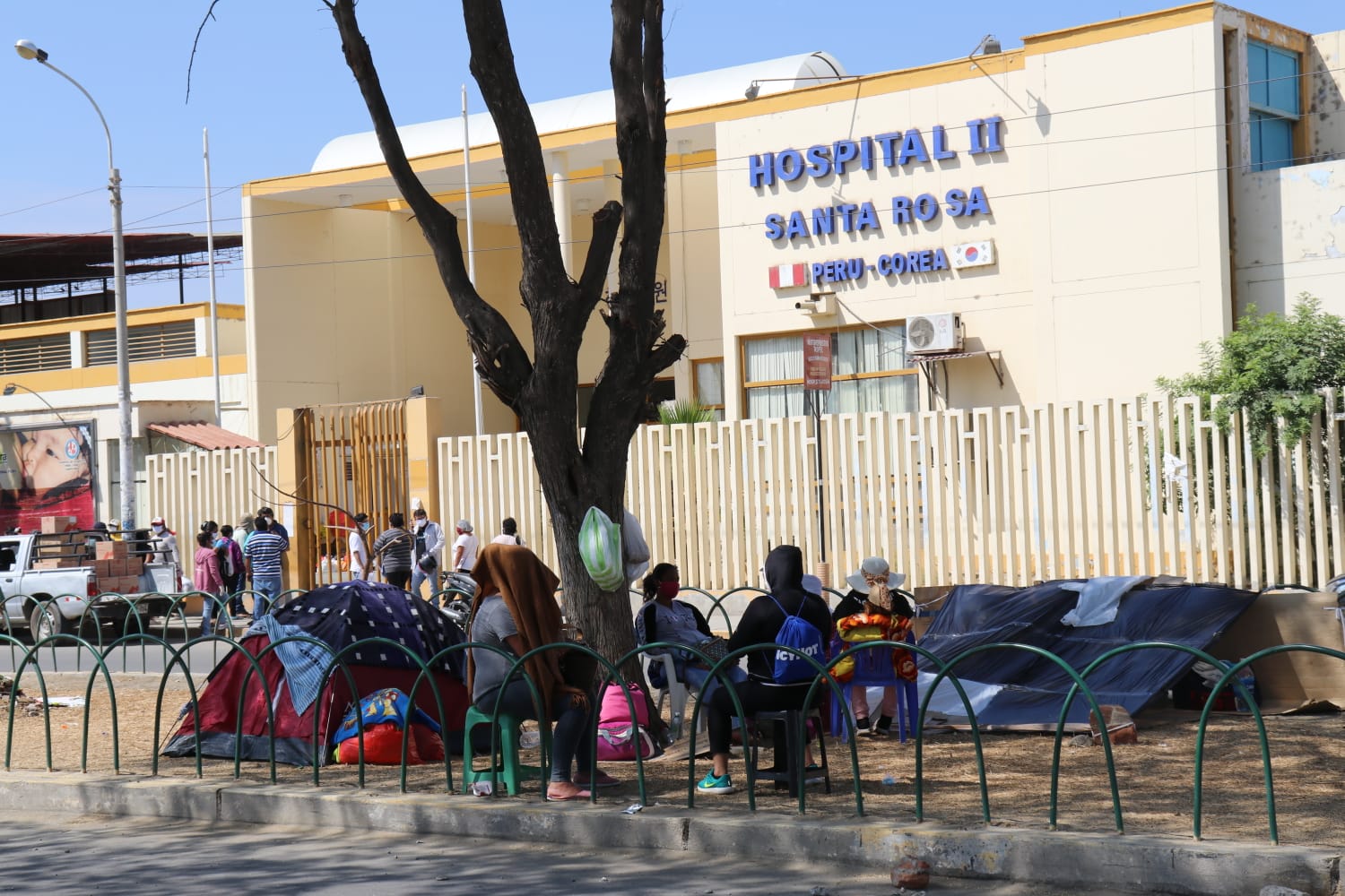 Mientras todo ello ocurre, los familiares que tienen a sus pacientes al interior del hospital, actúan como una gran familia en los exteriores. Se apoyan y se dan ánimo, pero también se prestan el alcohol en gel, plumones para marcar las bolsas con alimentos, hasta comparten las camas de cartones y frazadas que han improvisado en el frío suelo.