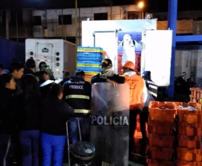 Tras la intervención, fueron decomisados por PRODUCE, un total de 3,450 kilos de caballa y 450 kilos de cabrilla voladora en tallas pequeñas, productos hidrobiológicos que estaban listos para ser comercializados en este terminal pesquero de Sullana.