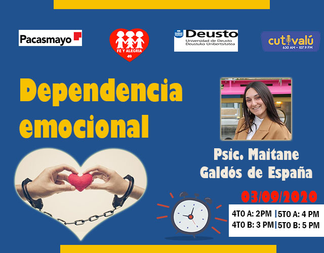 Como parte del proyecto social de Cementos Pacasmayo «Construyendo juntos proyectos de vida»; la especialista Maitane Galdós, licenciada en psicología de la Universidad Deusto en España, brindó el taller «Dependencia emocional» a estudiantes de 4to y 5to de secundaria del Colegio Fe y Alegría N.º 49 del distrito Veintiséis de Octubre.