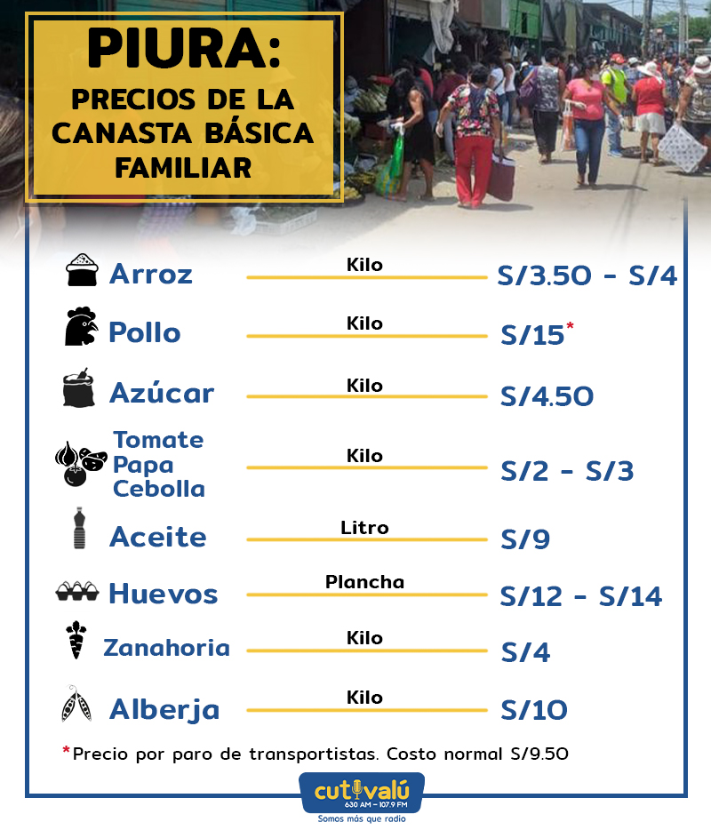 Frente a este panorama, Cutivalú recorrió diferentes puntos del mercado de Piura, donde los precios de los productos de primera necesidad se registran de la siguiente manera: