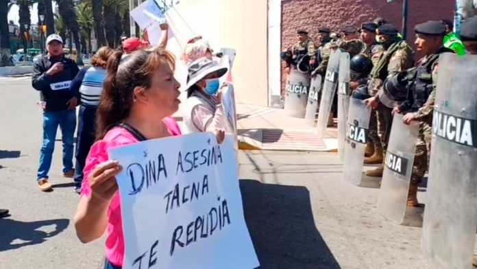 Tres personas fueron detenidas ayer en Tacna, tras protagonizar una protesta contra la presidenta de la República, a su llegada a la región para participar de la sesión descentralizada del Consejo de Ministros, desarrollada en el hotel Casa Andina.