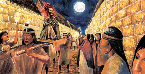 Sacaban a sus difuntos en procesión para que los acompañaran en esta fiesta, donde convivían agradecían y pedían que les acompañen en sus actividades agropecuarias, porque para ellos no existía la muerte, ni los difuntos dejaban de ejercer sus actividades.