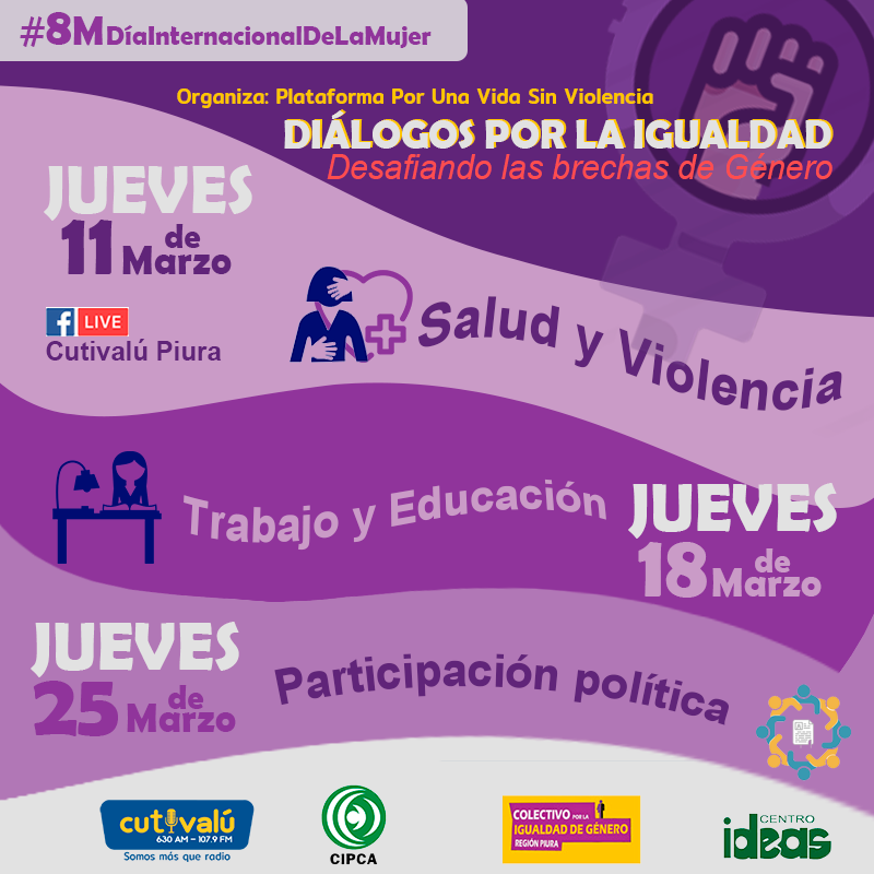 Para conmemorar el Día Internacional de la Mujer (8 de marzo), las y los integrantes de la Plataforma Por el Derecho a Una Vida Sin Violencia, realizarán diálogos virtuales para conocer la situación de las mujeres frente a Salud y violencia, trabajo y Educación, Participación política.