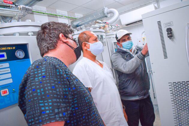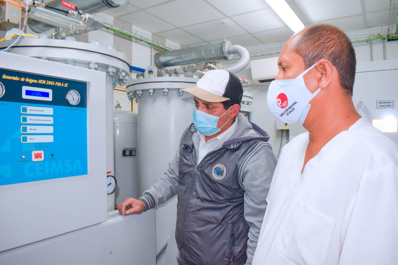 El director regional de Salud de Piura, Fernando Agüero Mija, junto a su equipo técnico se trasladó hasta la Planta de Oxígeno de Ayabaca para constatar in situ el correcto funcionamiento de la misma y garantizar la concentración de oxígeno y el grado de pureza necesario para la atención de pacientes COVID-19 de la provincia.