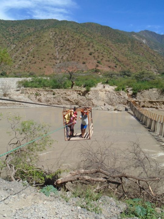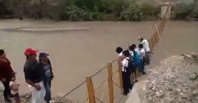 El director de la UGEL Huarmaca, José Temoche Quiroga, indicó que están en constante vigilancia y alerta sobre el caudal del río Huancabamba ante el riesgo de que los escolares del colegio Zapotal sufran algún daño a su integridad física al cruzar el puente rustica de sogas y palos.