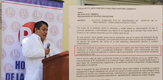 En el ojo de la tormenta. El director del hospital Santa Rosa de Piura, Edwin Chinguel Pasache, pidió donaciones a los proveedores del nosocomio para entregar regalos a los trabajadores en el marco del 55° aniversario de la institución. Cutivalú tuvo acceso a los oficios N° 1741, 1745 y 1748 de agosto de 2019 en … Sigue leyendo Director del Santa Rosa pidió regalos a proveedores para celebrar aniversario del hospital