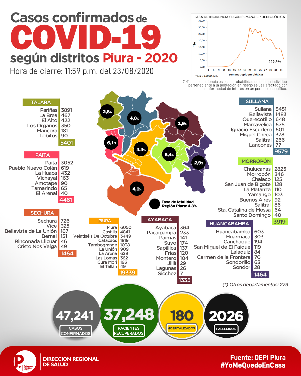 El director regional de Salud de Piura, Víctor Távara Córdoba, informó que reforzarán la estrategia de control en algunos distritos donde han aumentado los fallecidos por la COVID- 19 entre la semana del 15 al 22 de agosto y la semana del 23 al 30 de agosto.