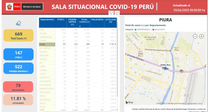 En la víspera el portal del Ministerio de Salud reportaba 669 casos confirmados de Covid-19 en la región Piura y 79 fallecidos a causa de esta enfermedad.