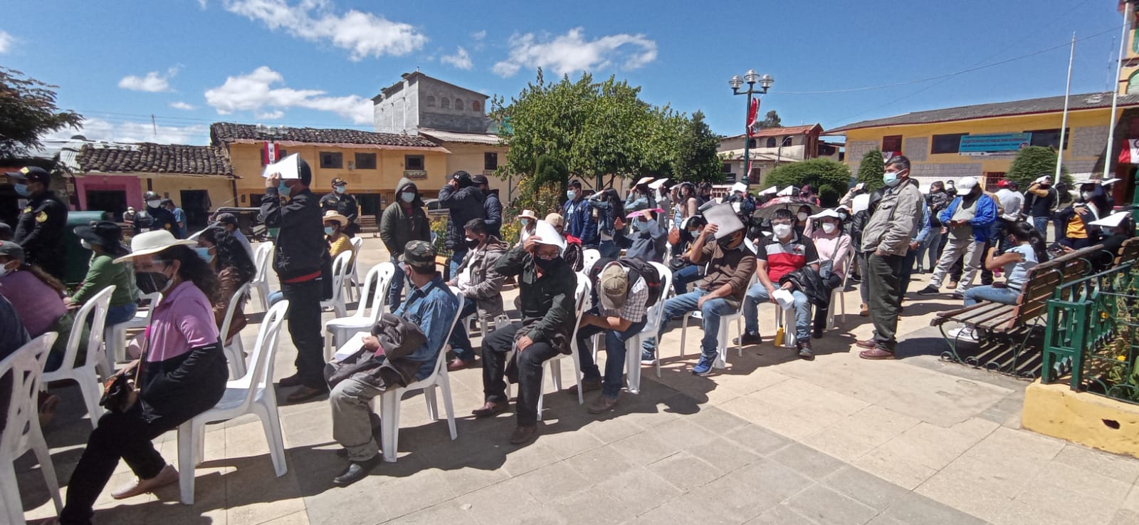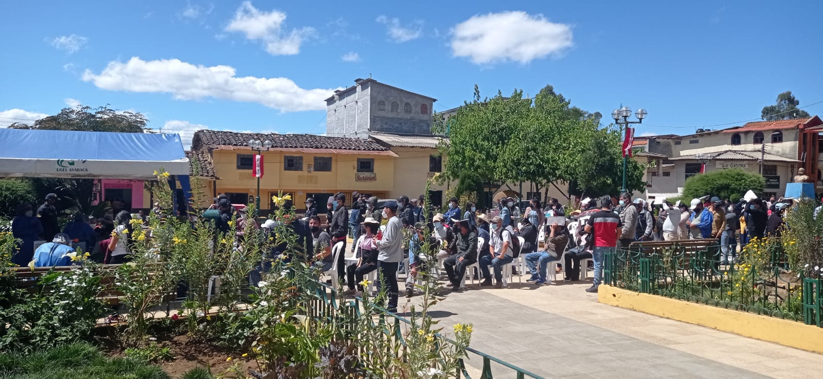 Desde muy temprano los maestros y maestras llegaron a la Plaza de Armas de la provincia ayabaquina para ser vacunados contra la covid. La convocatorio fue masiva, pues un gran número de docentes realizaron su fila de manera ordenada para poder inmunizarse.