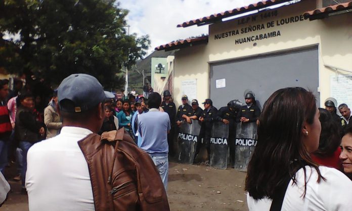 Esta madrugada unos 100 profesores, padres y madres de familia y miembros de rondas campesinas tomaron el local de la Unidad de Gestión Educativa Local (Ugel) Huancabamba, en protesta por las presuntas irregularidades en esta institución.
