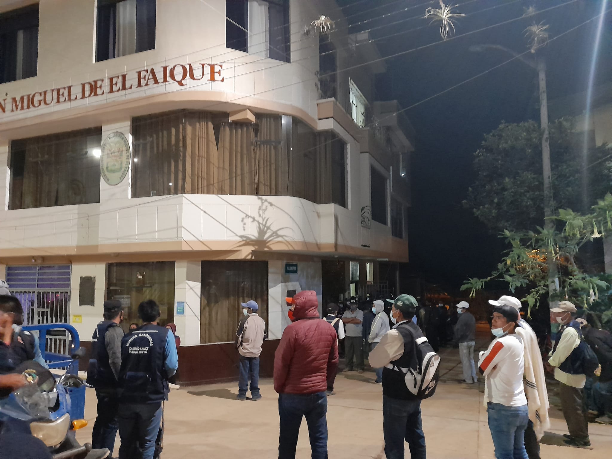 Desde primera horas de este lunes 20 de diciembre, los ronderos de El Faique estuvieron en los exteriores de la municipalidad, mientras que el alcalde José Antonino Huamán Chuquipoma permanecía dentro del palacio municipal. Incluso, la autoridad edil junto a su gerente y 11 trabajadores municipales pernoctaron en la municipalidad. Los ronderos le exigían al burgomaestre una rendición de cuentas sobre su gestión, sobre todo, por varias obras con presuntas irregularidades e inconclusas. Además, cuestionan que el burgomaestre no declara cuentas desde iniciado su periodo municipal. Sin embargo, desde la Municipalidad de El Faique aclaran que en el 2020, sí rindieron cuentas del año 2019.