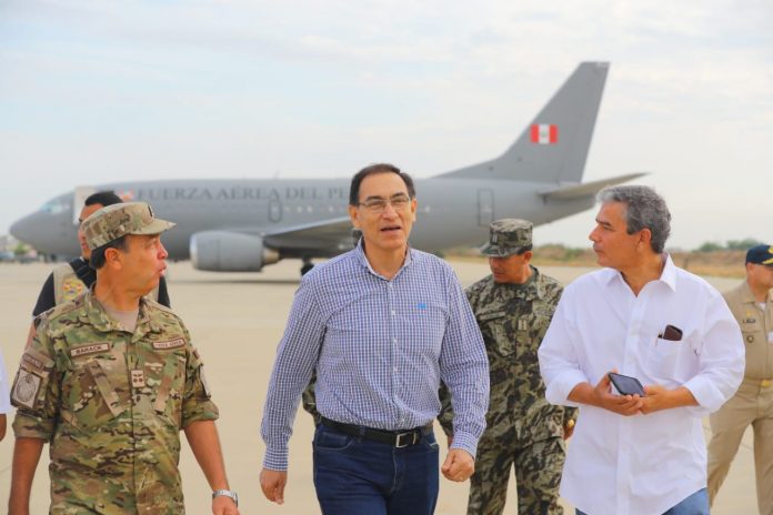 El presidente de la República Martín Vizcarra llegó este martes 27 de marzo al campamento Nuevo Santa Rosa, Km 980, para constatar la situación en la que se encuentran más de 5 mil damnificados.
