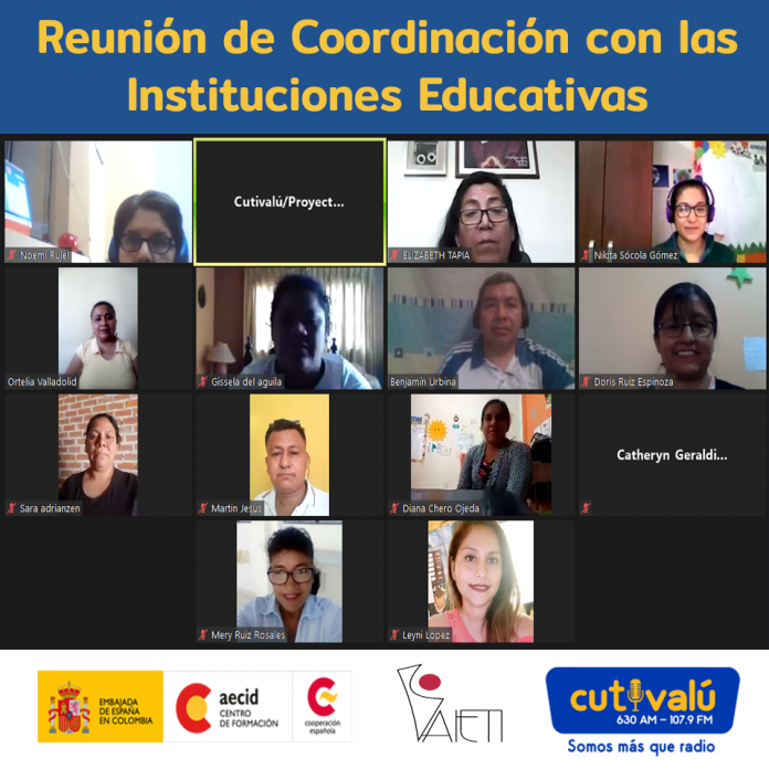 Esta mañana las directivas de las instituciones educativas focalizadas en Chulucanas y Veintiséis de Octubre, que participan del proyecto que ejecuta Cutivalú, se reunieron de manera virtual para tratar asuntos como la recepción de kits de limpieza para sus escuelas, un concurso para los estudiantes y próximos talleres sobre soporte emocional que se brindarán a la comunidad educativa.