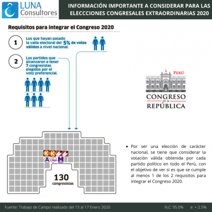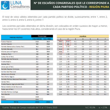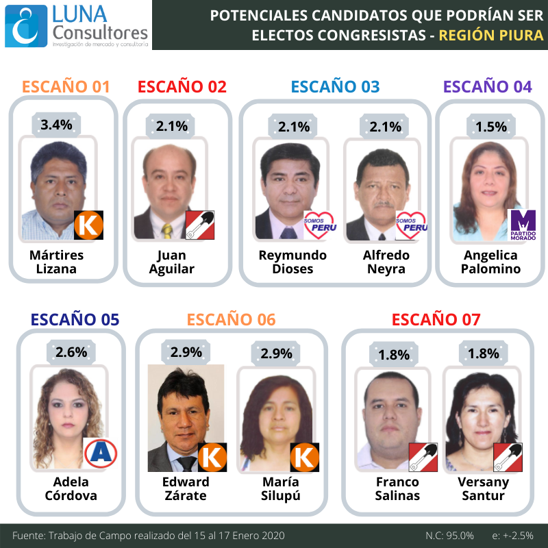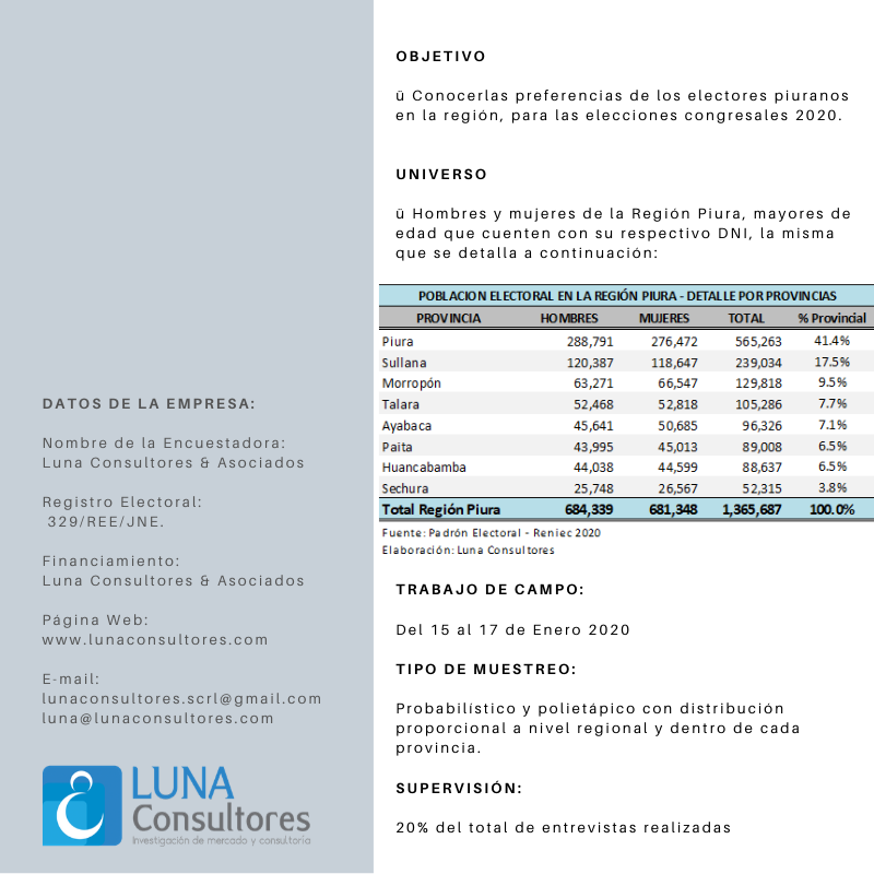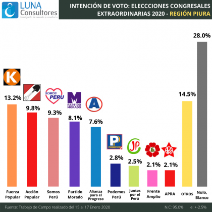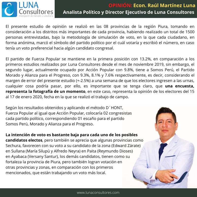 Cutivalú presenta el estudio de opinión pública Elecciones Congresales Extraordinarias 2020 realizado por Luna Consultores del 15 al 17 de enero en la región Piura.