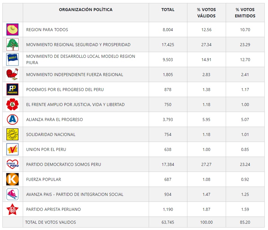 En la provincia de Talara, solo 41 votos separan al candidato José Vitonera Infante (Seguridad y Prosperidad) de su contendor Sigifredo Zárate Vite (Somos Perú), luego de las elecciones municipales para la alcaldía. Así lo confirman los resultados de la ONPE con el 99 % de las actas procesadas.