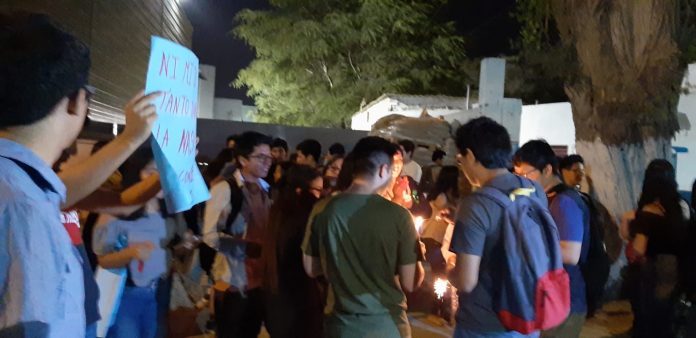 Fue en ese momento que las alumnas y alumnos que se encontraban en los exteriores de la UNP alzaron su voz de protesta, siendo reprimidos con bombas lacrimógenas por la Policía.