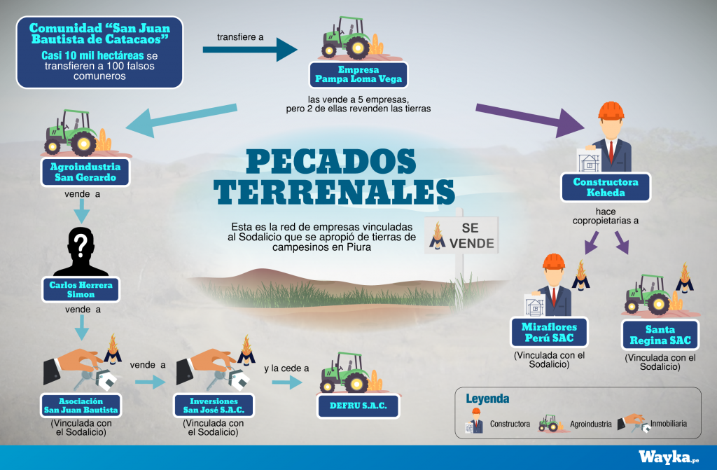 La transferencia de tierras aprobada en una supuesta asamblea fue la puerta para que casi 10 mil hectáreas de terrenos de la comunidad campesina San Juan Bautista de Catacaos entren en un circuito de empresas hasta terminar en manos de compañías vinculadas a miembros del Sodalicio de Vida Cristiana.