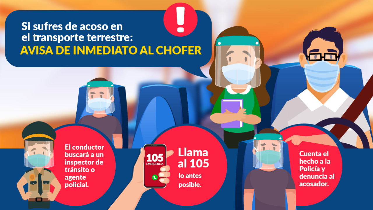 Ante esta alarmante realidad, el Ministerio de Transportes y Comunicaciones (MTC) elaboró el protocolo de Atención ante Actos de Acoso en el Transporte Terrestre de Personas con el fin de otorgar condiciones de seguridad para los pasajeros y dar una atención adecuada a las víctimas de un ataque sexual.