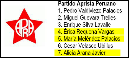 Fuerza Popular, el APRA, Somos Perú, Renacimiento Unidad Nacional, y Solidaridad Nacional otorgaron las tres primeras posiciones para hombres.