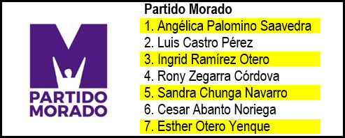 Los únicos partidos que tienen mayoría mujeres en la lista son el Partido Morado y Podemos por el Progreso del Perú. Mientras tanto, en el resto de partidos, la mayoría de candidatos son hombres y en un gran porcentaje, las primeras tres posiciones son para hombres.