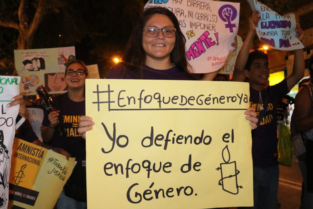 Asimismo, los manifestantes alzaron su voz para exigir a las autoridades peruanas entre otras cosas; aprobar e implementar con urgencia una política nacional de igualdad de género orientada en la prevención de la violencia contra mujeres y niñas incluyendo cualquier forma de discriminación.