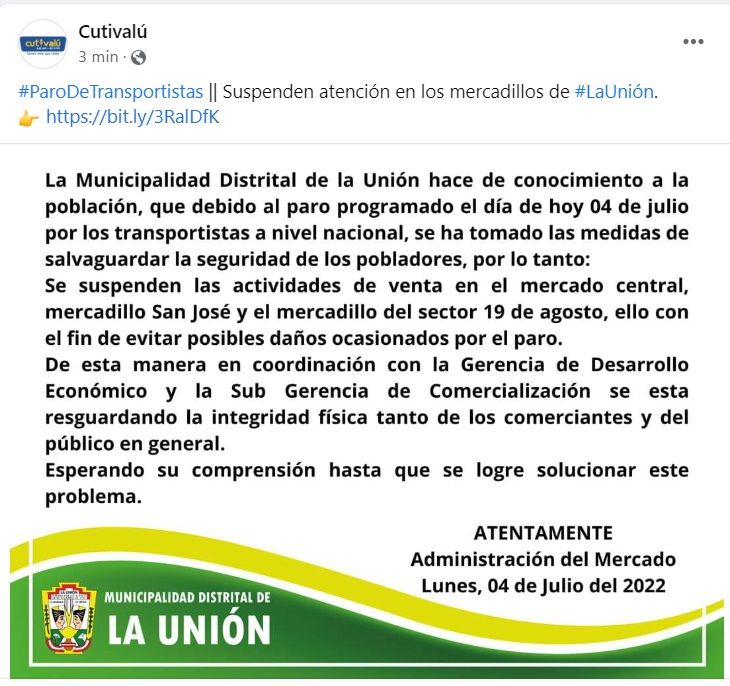 10:30 AM Los mercados mayorista y minorista Las Capullanas funcionan con normalidad.