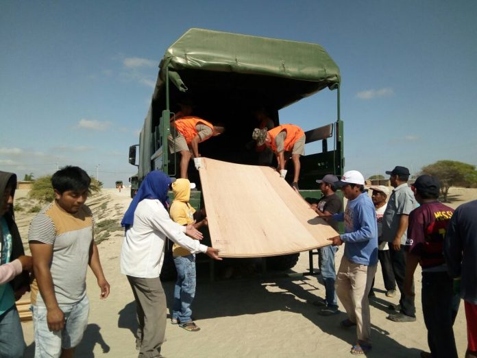 La ayuda consistió el calaminas, triplay, camas, colchones, listones de madera, entre otros.