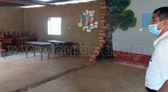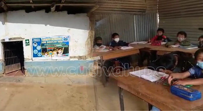 El director Ruben Alama Nizama informó que los mismos padres de familia han construido seis aulas de material rústico (adobe y barro), para que sus hijos puedan estudiar de manera presencial pero dos de estas aulas están por colapsar.