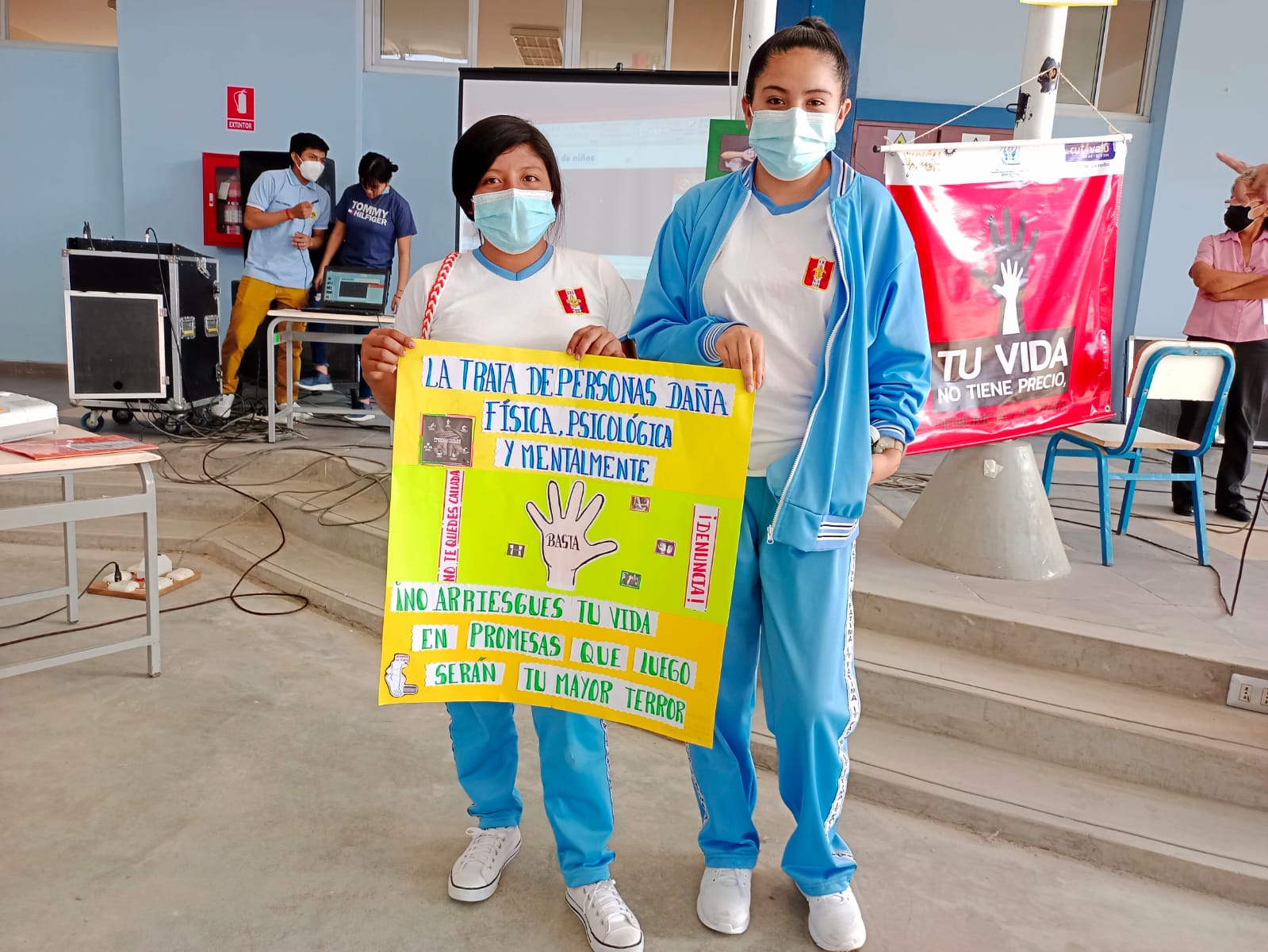 Luego de que el Ministerio Público informara sobre las 32 víctimas de trata de personas que registra Piura de enero a julio de este año, las alumnas del colegio Nuestra Señora de Fátima participaron del concurso de carteles referente a prevenir la trata de personas. Este concurso se desarrolló en el marco del colegio «Tu vida no tiene precio, denuncia la trata», que ejecuta Cutivalú.