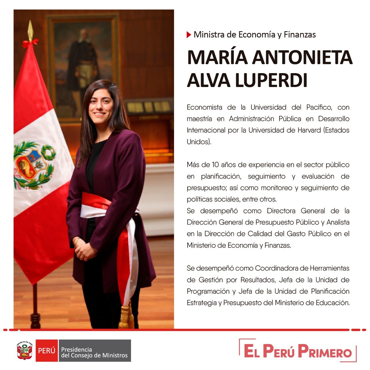 • Ministerio de Economía y Finanzas: María Antonieta Alva Luperdi